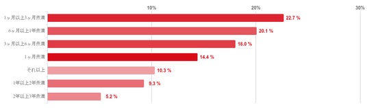 「1ヶ月以上3ヶ月未満」が22.7%で最も多かったが、「6ヶ月以上1年未満」との回答も20.1%とこれにせまる結果となった。