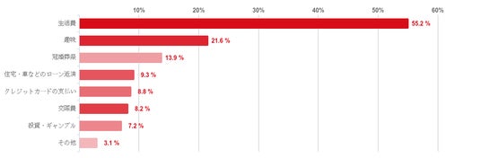 「生活費」との回答が55.2%で過半数となり、「趣味」や「冠婚葬祭」などがこれに続いた。