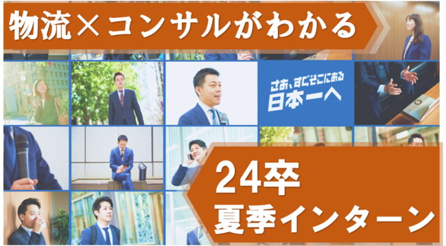 船井総研ロジ株式会社(本社:東京都千代田区、代表取締役社長:菅重宏)は、2022年10月5日(水)に2024年卒の学生向けに「物流×コンサルティング:ニッチトップである船井総研ロジの事業がわかる2時間」と題して、夏のインターンシップを開催します。完全ウェビナー形式のため気軽にご参加いただけます。