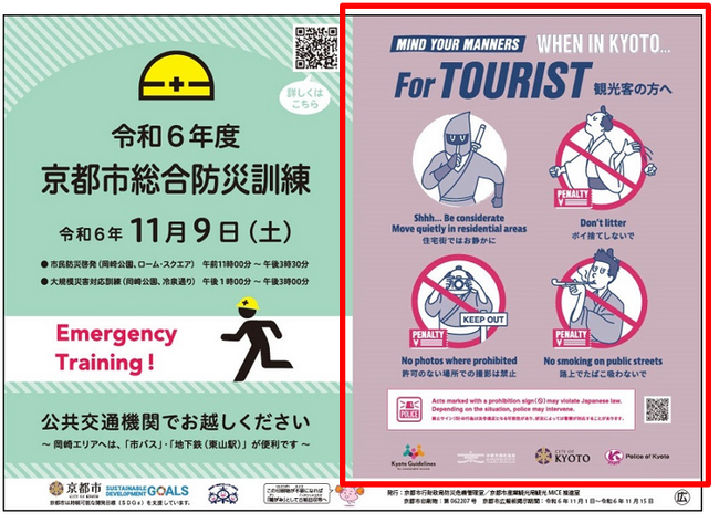 マナー啓発媒体「MIND YOUR MANNERS」(外国人観光客向け)及び「京都まちけっと」(日本人観光客