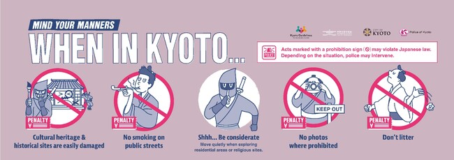 京都にお越しいただいた時や、京都観光の最中に観光マナー等を意識していただけるよう、次の取組を行います。