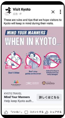 観光マナー等について、京都観光を企画される段階での浸透を図り、京都に訪れる前に正しく認識していただけるよう、次の取組を実施します。