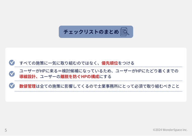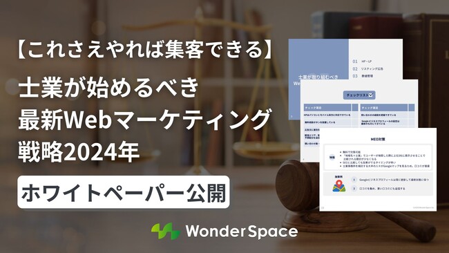 株式会社WonderSpace(本社:東京都港区、代表取締役社長:山本 尚宏)は、『【これさえやれば集客できる】士業が始めるべき最新Webマーケティング戦略2024年』に関する資料ダウンロードを開始しました。