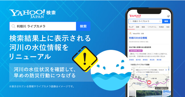 ヤフー株式会社(以下、Yahoo! JAPAN)は、「Yahoo!検索」での河川の水位情報に関する検索結果の内容をリニューアルし、検索結果上に表示される地図のサイズを大きくするとともに、地図に表示されるライブカメラ設置場所の選択や切り替えが可能になりました。これによりユーザーは、より現在地に近い場所や気になる場所に設置されたライブカメラをピンポイントで選択し、素早く水位の様子を確認できます。
