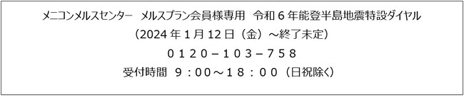 この度の令和6年能登半島地震によるメルスプラン会員様特設専用ダイヤルを開設いたしました。