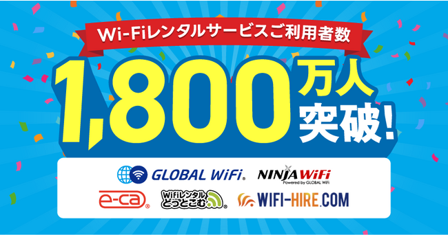 株式会社ビジョン(本社:東京都新宿区 代表取締役社長COO:大田健司、以下ビジョン)が提供するWi-Fiルーターレンタルサービスにおけるグループ全体のご利用者が、累計1,800万人を突破しましたことをお知らせいたします〔*〕。