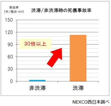 渋滞発生時の死傷事故率は、非渋滞時(渋滞して