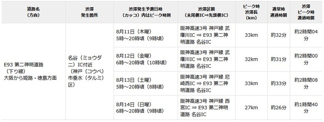 (下記「3.ピーク時30km以上と予測した渋滞」を参照 )