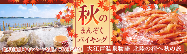 東北から九州まで、全国で温泉宿・温浴施設を展開する大江戸温泉物語ホテルズ&リゾーツ株式会社(本社:東京都中央区、代表取締役:森田満昌)が運営する、8月25日に期間延長が発表された「地方自治体キャンペーン」を使ってお得に宿泊できる北陸の2つの宿の魅力と秋の最新バイキング情報をご案内いたします。