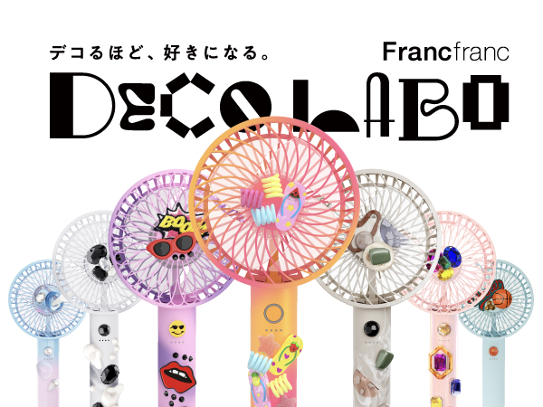 株式会社Francfranc(本社:東京都港区、代表取締役 社長執行役員 佐野一幸)が運営する、インテリアショップ『Francfranc(フランフラン)』は、特設サイトで自由にデコレーションを楽しめるサービス『DECO LABO(デコ ラボ)』を2023年6月29日(木)に公開しました。卓上でも携帯型でも使える2WAYタイプのUSB充電式小型扇風機「フレ ハンディファン」を特設サイト内で自由にデコレーションでき、商品本体とパーツがそのまま購入できるFrancfrancの新しいサービスです。特設サイトの公開に合わせて東京・渋谷、大阪・梅田の2カ所で開催したデコレーション体験イベントは延べ1万人以上のお客様にご来場いただきました。好評につき、渋谷モディ(東京都渋谷区)にて7月14日(金)~ 7月17日(月・祝)の4日間、同イベントを開催します。