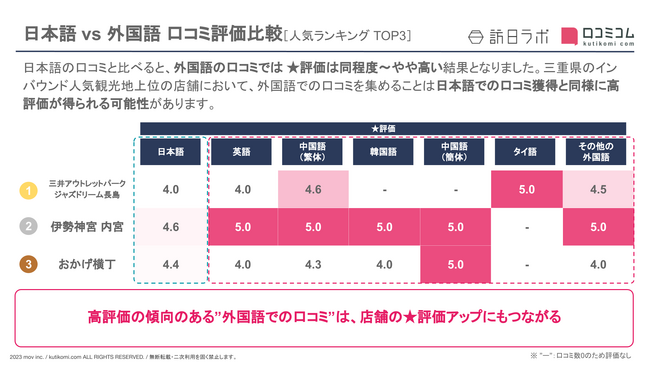 本レポートは「口コミコム」の新機能『インバウンドオプション』を用いています。
