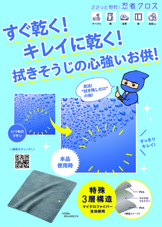 株式会社コジット(本社:大阪府大阪市、代表取締役:久保慎一郎)は、拭き上げ掃除のお供!「ささっと即乾!忍者クロス」を9月1日(金)より全国発売します。