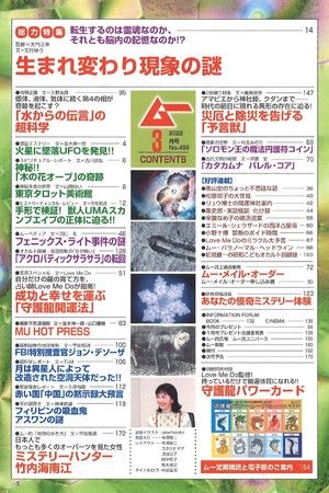 2色刷り特集 災厄と除災を告げる「予言獣」 /実用スペシャル 成功と幸せを呼ぶ「守護龍開運法」/特別とじ込み付録 守護龍パワーカード/赤い国「中国」の黙示録大預言/FBI特別捜査官ジョン・デソーザ/フィリピンの吸血鬼アスワンの謎/ミステリーハンター 竹内海南江/月は異星人によって改造された空洞天体だった!!/ほか
