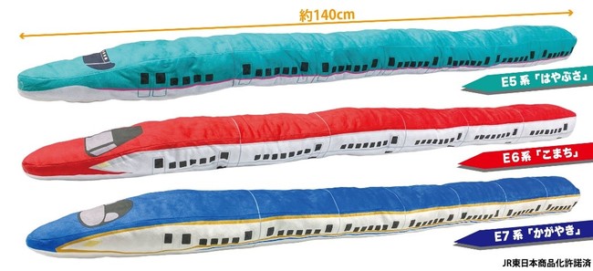 E5系「はやぶさ」・E6系「こまち」・E7系「かがやき」の車両をイメージした全長140cmのSUPERLONGぬいぐるみ