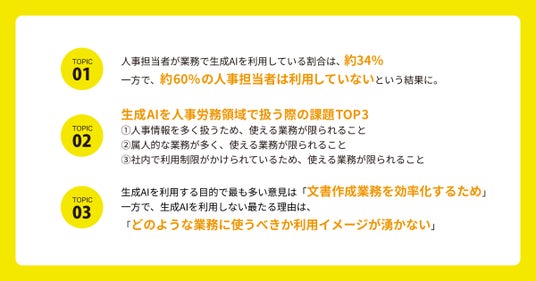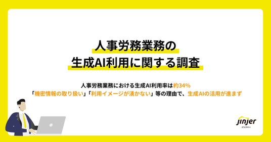 人事労務業務における生成AI利用率は約34%「機密情報の取り扱い」「利用イメージが湧かない」等の理由で、生成AIの活用が進まず