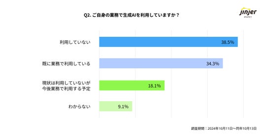 クラウド型人事労務システム「ジンジャー」を提供しているjinjer株式会社(本社:東京都新宿区 代表取締役社長:桑内 孝志 以下、jinjer)は、企業の人事担当者計360名を対象に「人事労務業務の生成AI利用に関する実態」に関する調査を実施しました。