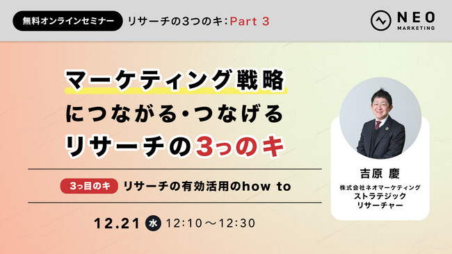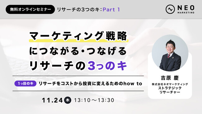 今回は弊社のストラテジックリサーチャー吉原による、リサーチを目的(ただやる)から実務に活用するためのポイントをシンプルにお伝えするウェビナー開催のお知らせです!!全3回を通してお伝えしますので各回ぜひご参加くださいませ!