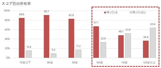 また、ラウンド頻度が高いほど所有率も高くなりますが、年2~3回程度のプレーヤーでも42.9%、年に1回以下の人でも37.2%が所有していると回答しました。