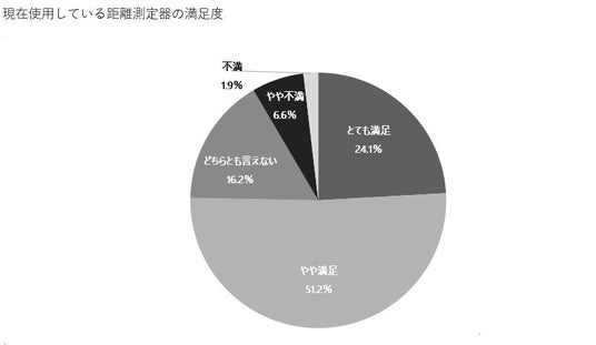 満足している理由としては、「操作が簡単」(62.4%)、「測定が早い」(44.5%)、「携帯しやすい」(37.7%)などが挙げられ、距離測定という手間へのストレスを小さくする要素が上位に目立つ結果となりました。
