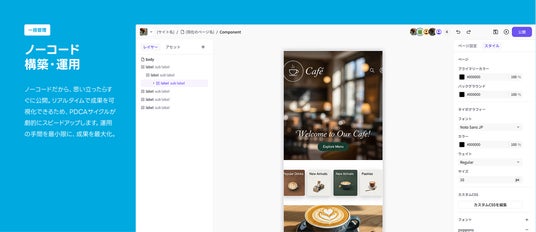 ヤプリが強みとするノーコードCMSにより、LINEミニアプリの構築から日々の運用までをノーコードで実現します。