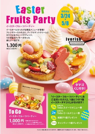 ※Ivorish立川、福岡ももちでは、To Goスタイルのイースターフルーツパーティーを店内でお召し上がりいただく事も可能です。その場合、税率が10%になります。