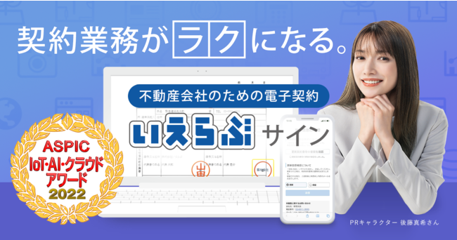 いえらぶGROUPが2022年4月にリリースした不動産業界向け電子契約システム「いえらぶサイン」は、不動産契約に特化した柔軟性の高さ、法対応が特徴です。また「いえらぶBB」との連携により、不動産契約に係る一連の書類が、案件ごとにオンライン上でまとめて管理でき、業務の省力化・効率化を実現します。