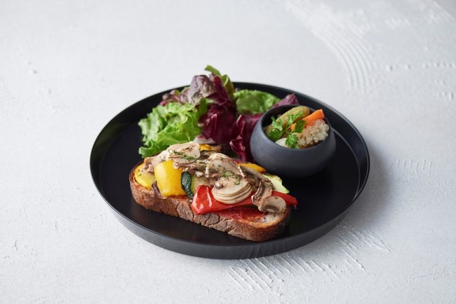 そして、フードには、アンチョビバターを塗ったカンパーニュに、ローストした彩り野菜とたっぷりのマッシュルームをのせたオープンサンド「マッシュルームと彩り野菜のアンチョビバターサンド」など、素材や彩りにこだわった限定メニューをご用意しました。また、感度の高い大人たちが集う二子玉川エリアでのオープンに際し、元トップモデルで現在はパーソナルトレーナー兼栄養士として活躍するオルガ・アクノバ氏と開発した、美と健康を意識したフードメニューも。