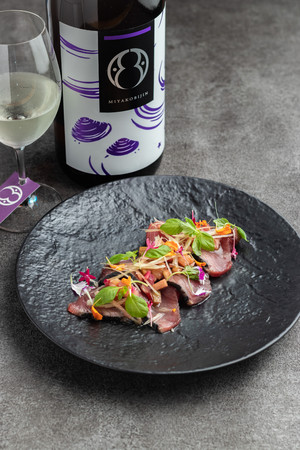 ブレンドと熟成による日本酒の深みが、香ばしいカツオとコラトゥーラ入りのソースにも負けず、より旨味を引き立てます。