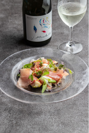 旬のイチジクと生ハム、とろけるような食感とコク深い味わいを持つ水牛モッツァレラを、ザクロ果汁、塩、エクストラヴァージンオリーブオイルで和えてシンプルに仕上げました。