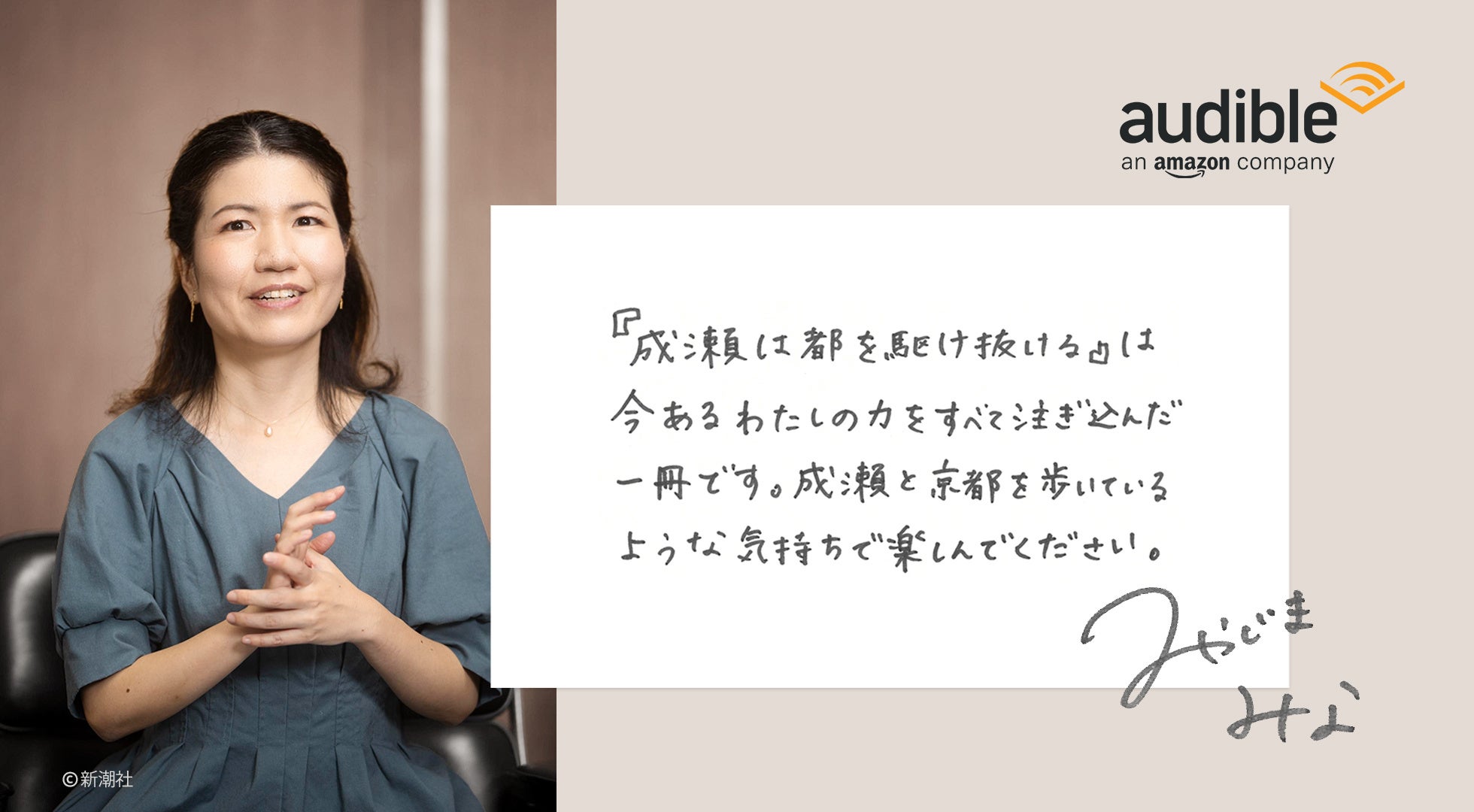 『成瀬は都を駆け抜ける』は、滋賀・大津で“自分の道”を駆け抜けてきた成瀬あかりが、新たな仲間たちと出会いながら次なる目標として「京都を極める」ことに挑む物語です。一方で、東京の大学へ進学した幼馴染・島崎みゆきのもとには、成瀬から突然“ある知らせ”が届き--。成瀬らしいまっすぐさと行動力が、舞台を「都」へ移してさらに加速する、シリーズの集大成となる完結作です。今回の配信で、シリーズ全3作がAudibleで揃います。