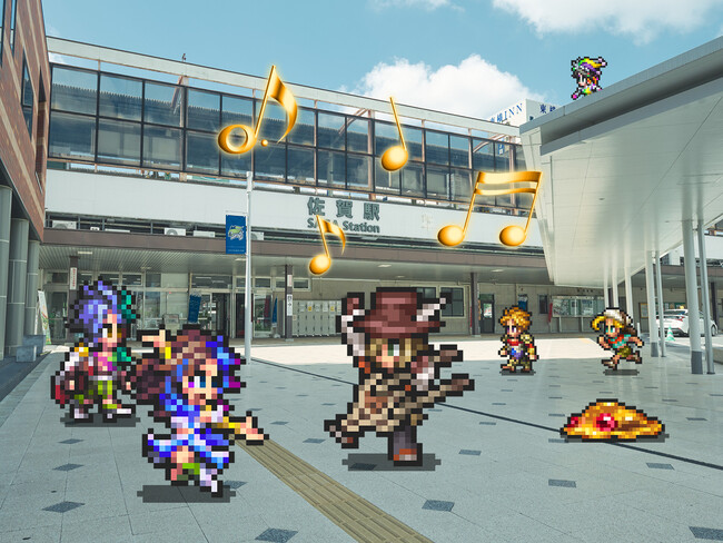 ・佐賀駅、唐津駅の列車入線時に流している自動放送に「サガ」シリーズの楽曲を導入します。