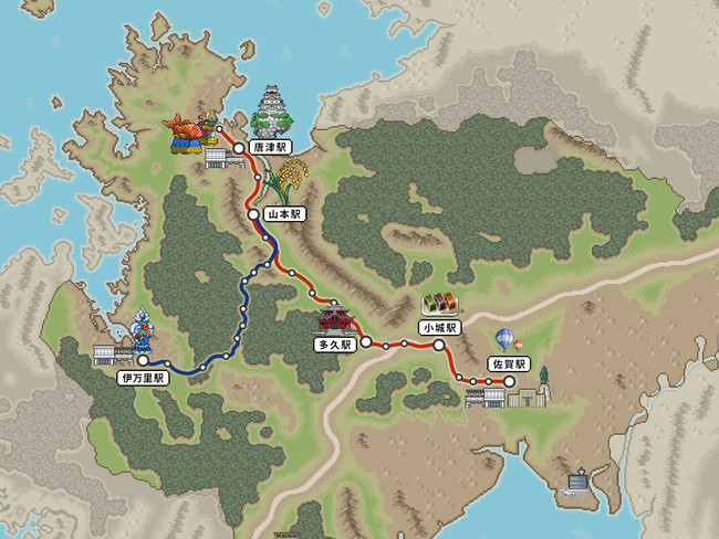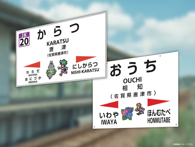 ・長崎本線(佐賀~久保田、【注】バルーンさが駅(臨時駅)を含む)、唐津線(小城~西唐津)、伊万里駅の計17駅において、「サガ」シリーズのキャラクターと各駅の名所・名物をドット絵で描かれたオリジナル駅名標を設置します。
