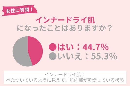44.7%の方がインナードライ肌になったことがあることが明らかになりました。