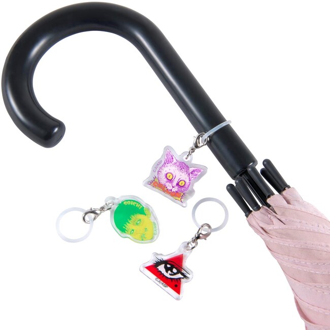 傘につけておく目印として注目度抜群なアイテムを3種セットでリリース! 個性あふれる3パターンは家族で分けるもよし、その日の気分で使い分けるも良しだ。