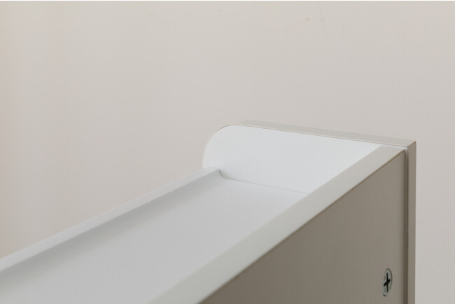 3、お部屋のスペースを圧迫しないよう、奥行が32.5cmとコンパクトな設計にしています。また、お部屋のインテリアにもなじみやすいホワイトとナチュナルの2色をご用意しています。