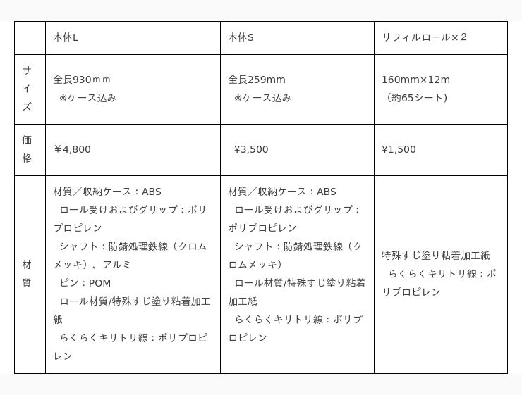 *リフィルは取替用(スペア)ロールのことです。