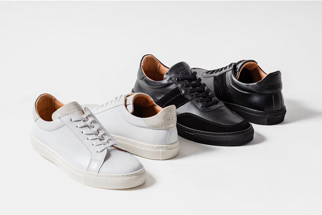 1886年から靴の聖地ノーザンプトンにて靴作りを続けるジョセフ チーニーと、同じく英国老舗シューメーカーであるゴーラルのコラボレーションモデルが登しました。ホワイトベースで仕立てたレザースニーカーKELHAM(ケルハム)と、ブラックのカーフスキンとスエードを組み合わせたスニーカーSTEEL(スチール)。それぞれのクラフトマンシップを融合させ「伝統」と「モダン」を表現した2型です。