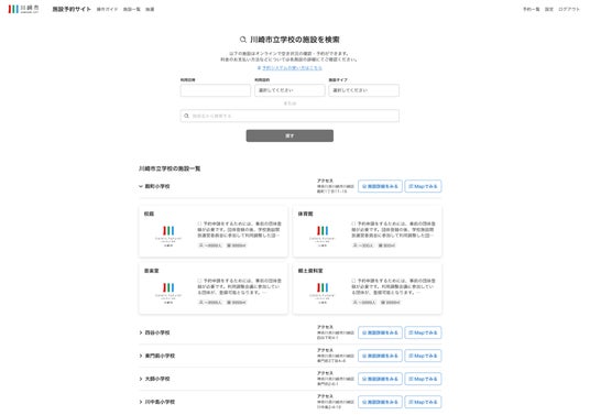 川崎市の施設検索・予約ページは下記よりご参照ください。