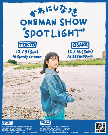 かわにしなつきは、12月に自身初の東阪ワンマンライブ「かわにしなつき ONE MAN SHOW “SPOTLIGHT”」を東京は12月3日(日)にSpotify O-WEST、大阪は12月16日(土)に松下IMPホールにて開催する。チケットは各プレイガイドにて発売中。