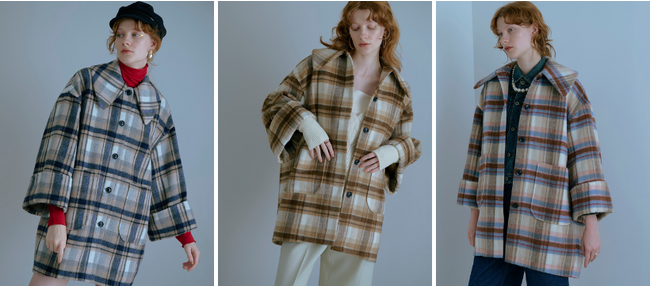 大胆なチェック柄の主役級ミディアム丈コート。やや毛足のある素材を使用し、オーバーサイズながら細見せを実現するコクーンのシルエット。また、大きい衿による小顔効果や袖口の大きな折り返しによる手首の細見せがポイント。カジュアルから綺麗めまで、幅広いシーンで活躍が期待できるアイテムです。