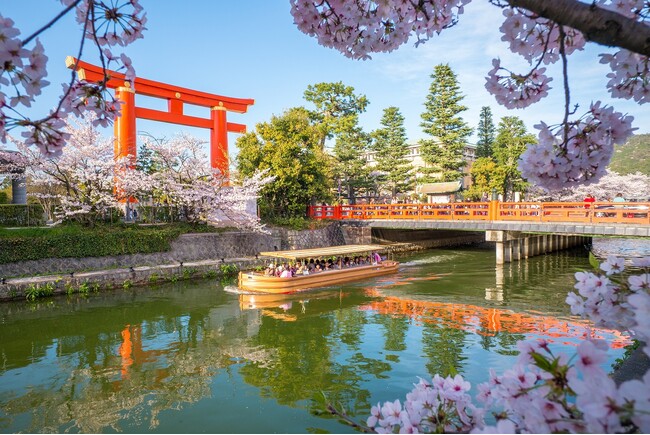 京都の三大祭りの一つである「時代祭」が執り行われる平安神宮は、1895年(明治28年)に建立された京都随一の神宮です。印象的な朱塗りの建物と白砂をはじめとする伝統と格式に彩られた雅な風景は、見る人に日本の美を感じさせます。多くの重要文化財、登録有形文化財を持ち、境内にある平安神宮神苑は国の名勝にも指定されています。