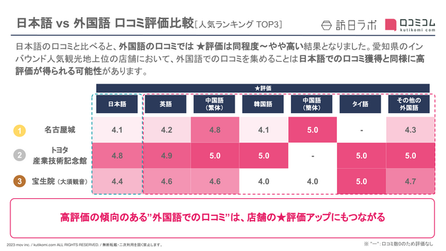 本レポートは「口コミコム」の新機能『インバウンドオプション』を用いています。