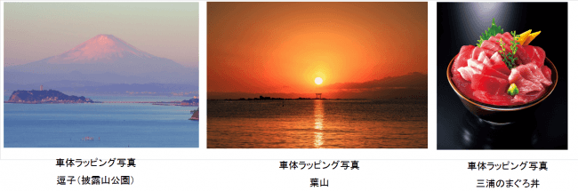 車体にラッピングするほか、中吊り広告や窓上広告もすべて三浦半島の魅力がつまった特別デザイ