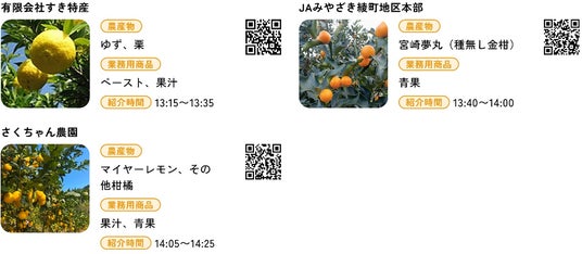 自然豊かで温暖な気候の「日本のひなた宮崎県」で育まれた特産の「ゆず」や種無し金柑「宮崎夢丸」、希少な国産「マイヤーレモン」に加え、日向夏やへべす、フィッシュミートなど宮崎県産の珍しい農産物をご紹介いたします。また、今回のイベント会場を提供いただいているホシザキ販売株式会社から、最新の飲食業向け機器もご紹介します。この機会に、情報収集や意見交換のためにぜひお気軽にご参加ください。
