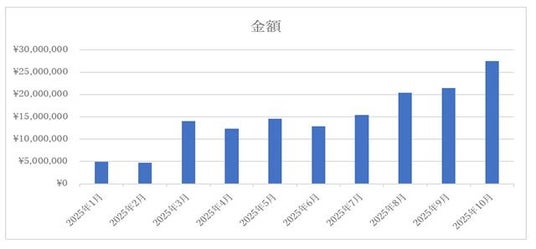 売れるネット広告社グループ株式会社(本社:福岡県福岡市、代表取締役社長CEO:加藤公一レオ、東証グロース市場:証券コード9235、以下 売れるネット広告社グループ)の連結子会社である売れるネット広告社株式会社は、2025年1月の運用広告チーム本格稼働以降、クライアント様からお任せいただく月次運用予算が拡大し、4か月連続で最高金額を更新していること、直近10月は運用広告チームの本格稼働開始月(1月)対比で約5.6倍(約556%)に到達していることをお知らせいたします。