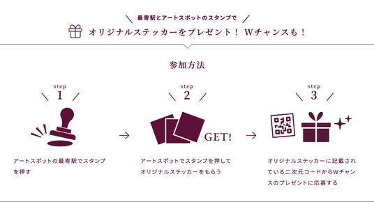 「阪急ARTTRIP」のスタンプラリー参加者に配布するオリジナルステッカー裏面から、ノーコードツール「クロワッサン」で構築したアンケートフォームへ誘導。