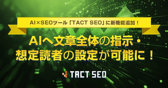 株式会社ウィルゲート(本社:東京都港区、代表取締役:小島 梨揮、以下「ウィルゲート」)が提供するAI×SEOツール「TACT SEO」は、簡単SEO記事作成機能に、AIへの全体指示・想定読者(ペルソナ)の設定ができる機能を新たに追加し、提供を開始したことをお知らせいたします。