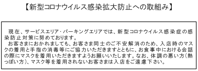 店舗切替作業に伴い、下記期間において営業を休止させていただきます。営業休止期間中は飲食・物販・自動販売機の営業は一切行っておりません。恐れ入りますが、周辺のSA・PAをご利用ください。なお、お手洗いはご利用いただけます。