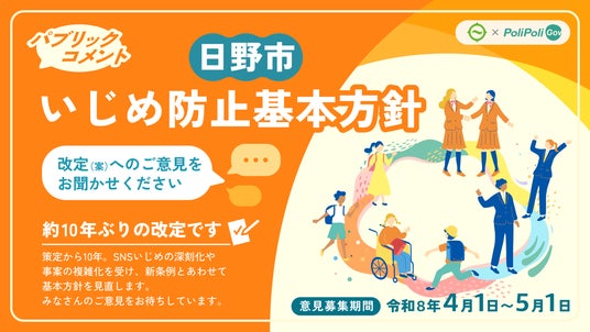 株式会社PoliPoli(所在地:東京都千代田区、代表取締役:伊藤和真)は、東京都日野市の「パブリックコメント」に『PoliPoli Gov』が導入されることをお知らせします。