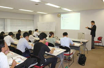 ↑カレー大學講義風景「元代ゼミ人気講師で今やカレー大學看板講師の湯浅先生の白熱の講義」